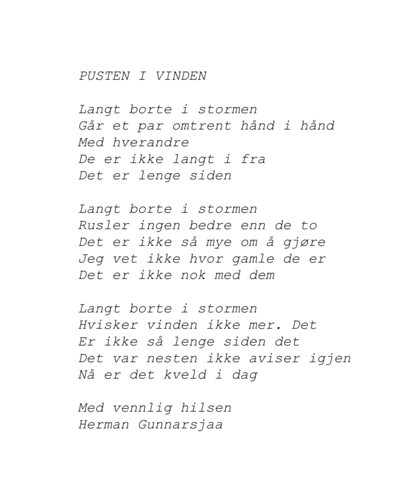 Publiser august 14, 2019juni 9, 2020 av nettstedet hermangunnarsjaa.com pusten i vinden (C) leve.live og Herman Gunnarsjaa