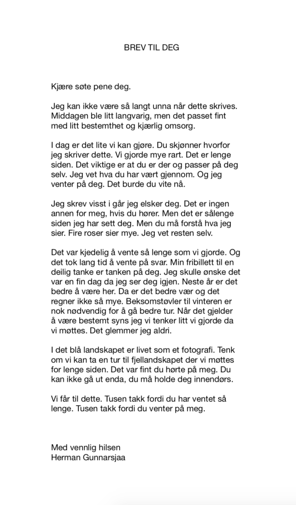 Publiser oktober 3, 2019 av nettstedet hermangunnarsjaa.com brev til deg (C) leve.live og Herman Gunnarsjaa
