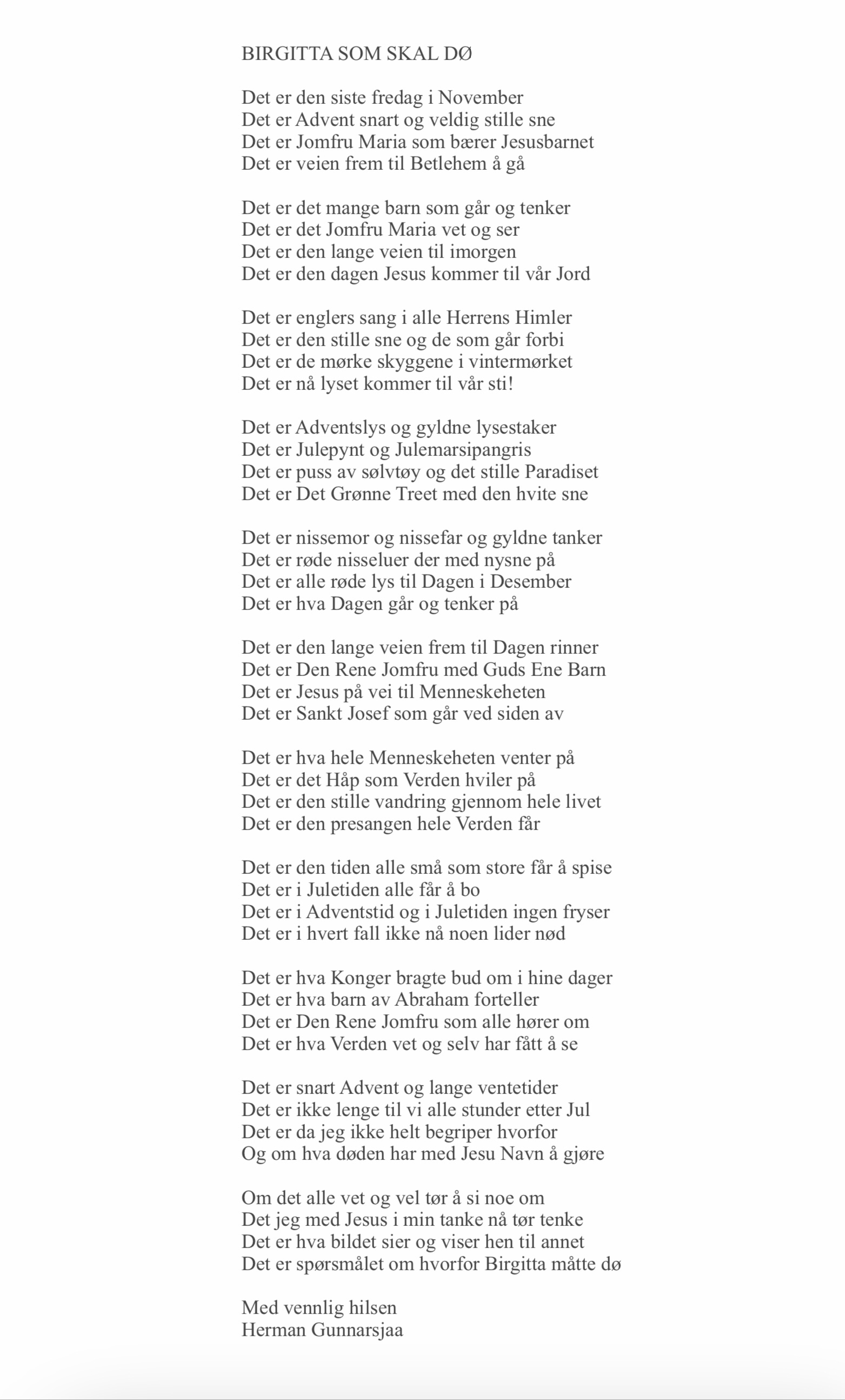Publiser november 29, 2019 av nettstedet hermangunnarsjaa.com Birgitta som skal dø (C) leve.live og Herman Gunnarsjaa