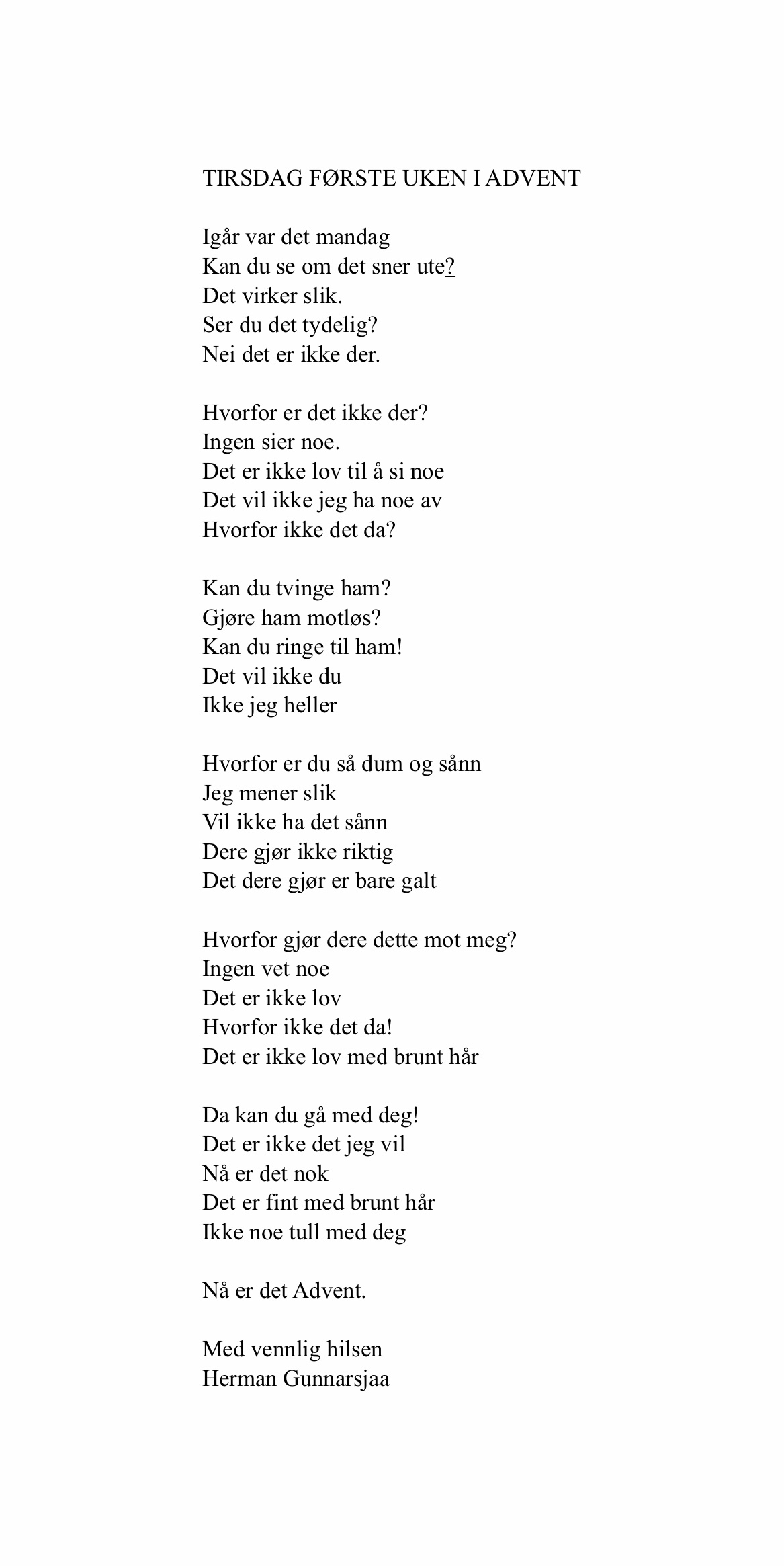 Publiser desember 3, 2019desember 4, 2019 av nettstedet hermangunnarsjaa.com tirsdag første uken i Advent (C) leve.live og Herman Gunnarsjaa