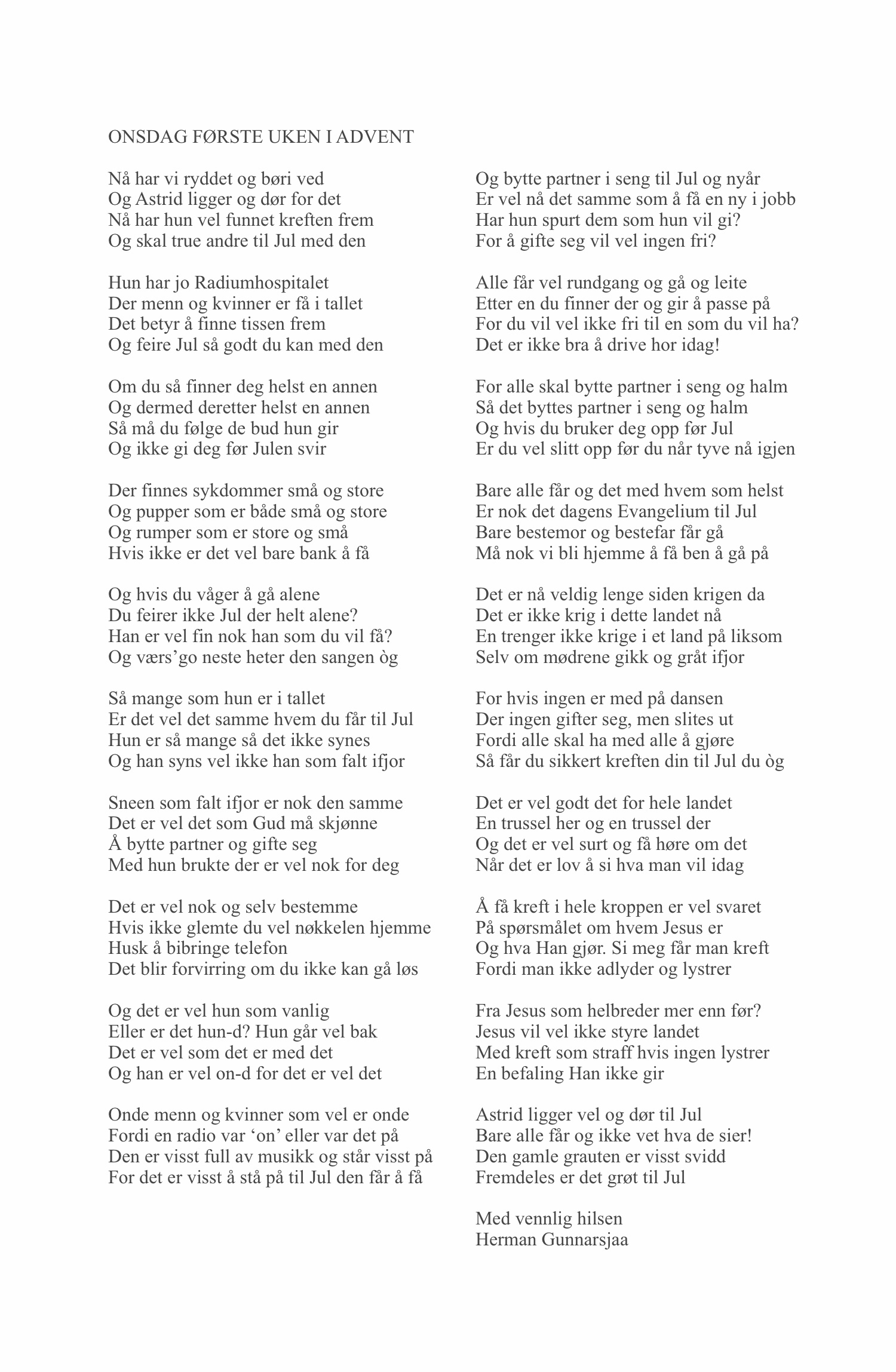 Publiser desember 4, 2019desember 4, 2019 av nettstedet hermangunnarsjaa.com onsdag første uken i Advent (C) leve.live og Herman Gunnarsjaa