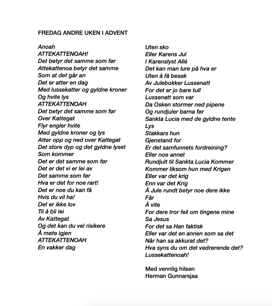 Publiser desember 13, 2019 av nettstedet hermangunnarsjaa.com fredag andre uken i Advent (C) leve.live og Herman Gunnarsjaa