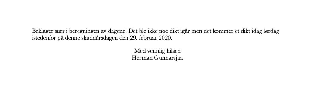 Publiser februar 29, 2020 av nettstedet hermangunnarsjaa.com beklager! leve.live og Herman Gunnarsjaa