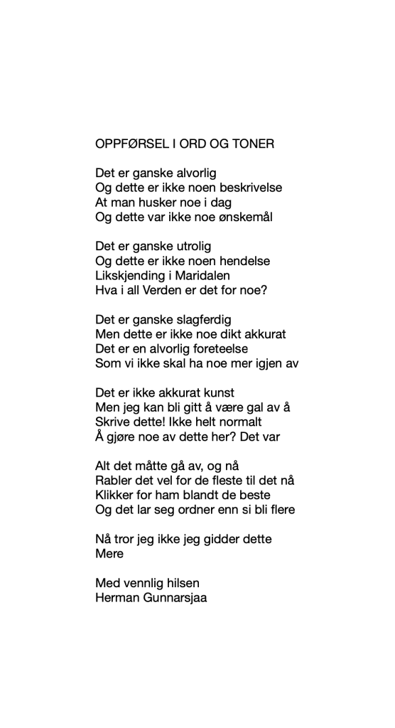 Publiser mars 16, 2020 av nettstedet hermangunnarsjaa.com oppførsel i ord og toner (C) leve.live og Herman Gunnarsjaa