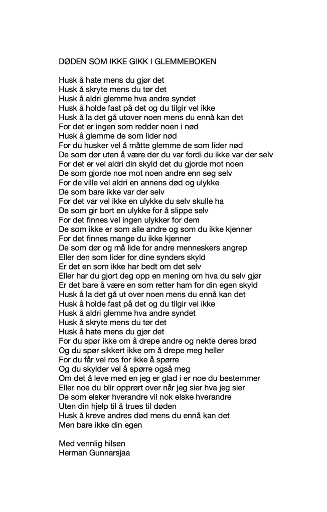 Publiser mars 10, 2020mars 10, 2020 av nettstedet hermangunnarsjaa.com døden som ikke gikk i glemmeboken (C) leve.live og Herman Gunnarsjaa