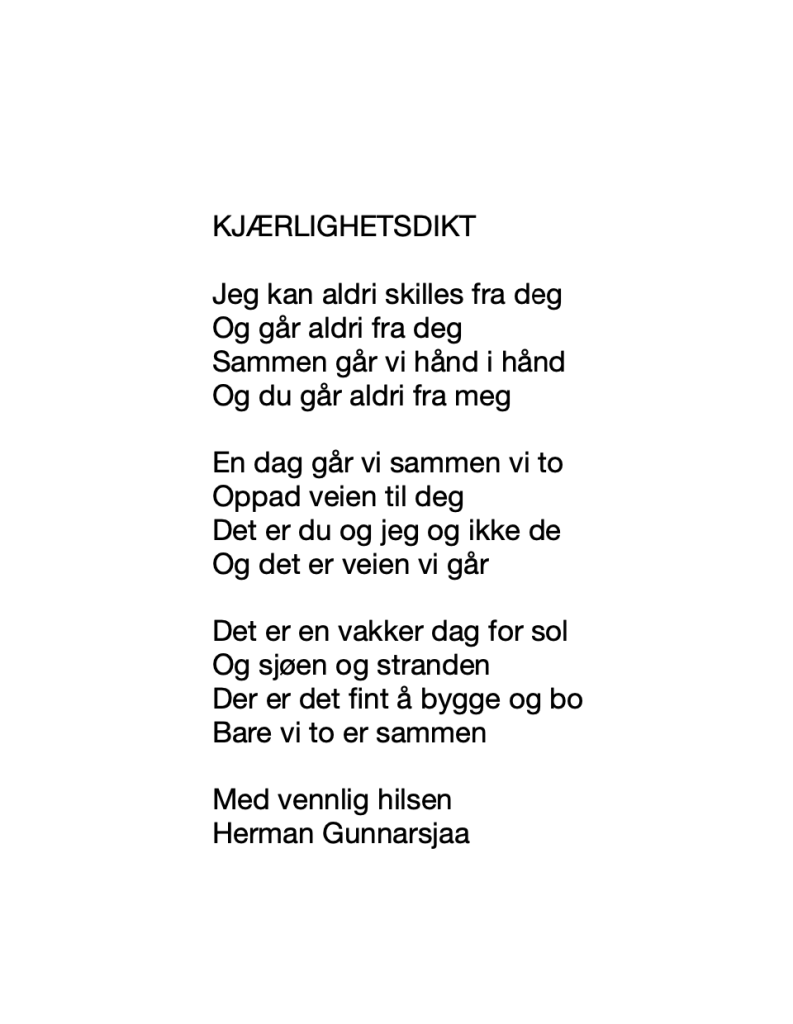 Publiser april 3, 2020 av nettstedet hermangunnarsjaa.com kjærlighetsdikt (C) leve.live og Herman Gunnarsjaa