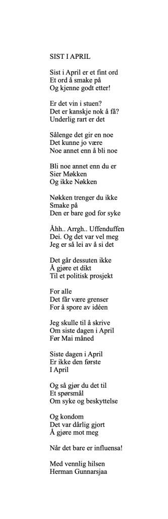 Publiser april 30, 2020 av nettstedet hermangunnarsjaa.com siste i april (C) leve.live og Herman Gunnarsjaa