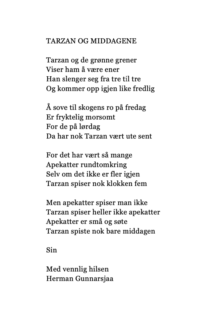 Publiser mai 14, 2020 av nettstedet hermangunnarsjaa.com tarzan og middagene (C) leve.live og Herman Gunnarsjaa