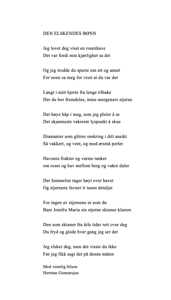 Publiser mai 15, 2020 av nettstedet hermangunnarsjaa.com den elskendes bønn (C) leve.live og Herman Gunnarsjaa