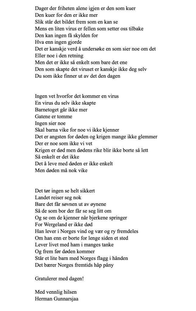 Publiser mai 17, 2020 av nettstedet hermangunnarsjaa.com Wergeland er ikke død (C) leve.live og Herman Gunnarsjaa