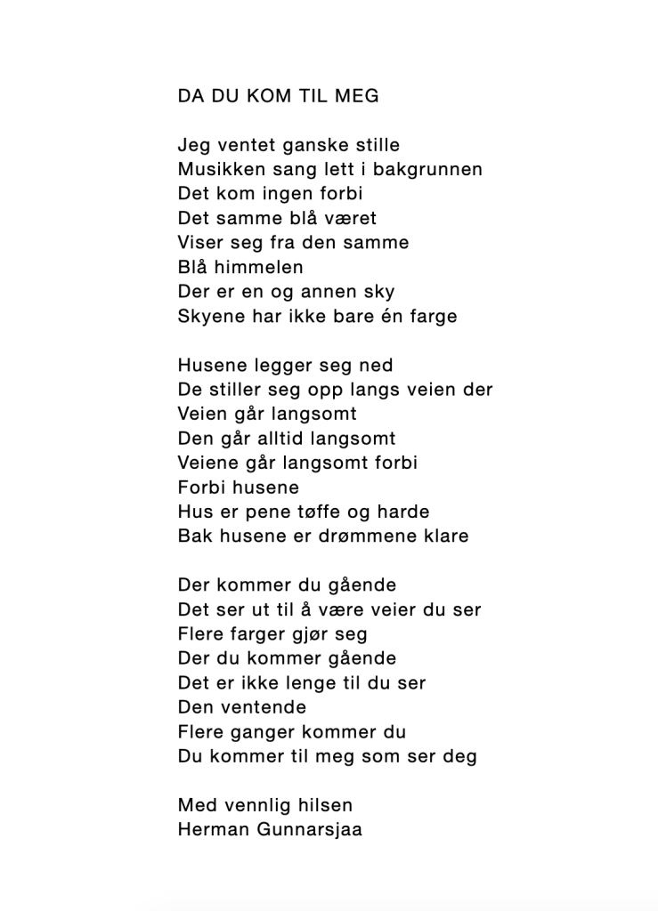 Publiser juni 9, 2020 av nettstedet hermangunnarsjaa.com da du kom til meg (C) leve.live og Herman Gunnarsjaa