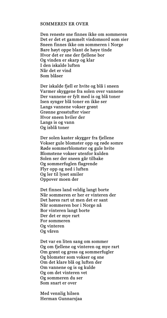 Publiser august 25, 2020 av nettstedet hermangunnarsjaa.com sommeren er over (C) leve.live og hermangunnarsjaa.com og Herman Gunnarsjaa
