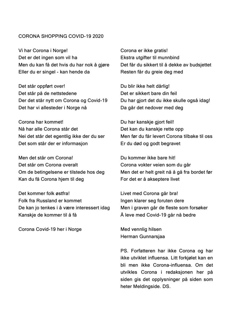 Publiser august 18, 2020august 19, 2020 av nettstedet hermangunnarsjaa.com corona shopping covid-19 2020 (C) leve.live og Herman Gunnarsjaa