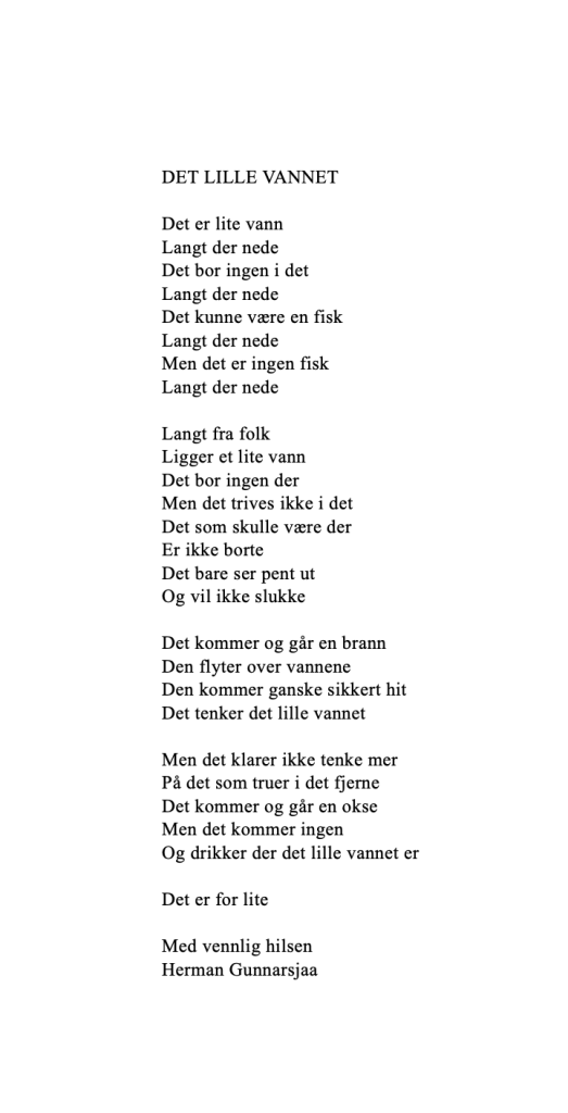 Publiser oktober 8, 2020 av nettstedet hermangunnarsjaa.com det lille vannet (C) leve.live og hermangunnarsjaa.com og Herman Gunnarsjaa