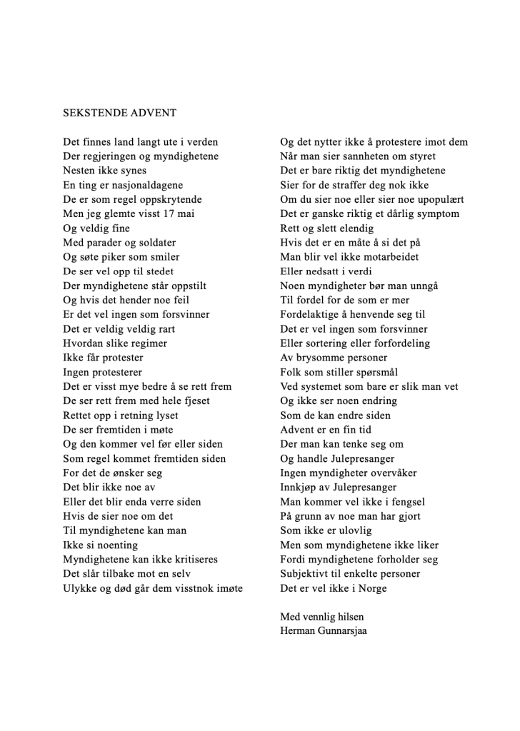 Publiser desember 14, 2020desember 19, 2020 av nettstedet hermangunnarsjaa.com sekstende advent (C) leve.live og hermangunnarsjaa.com og Herman Gunnarsjaa