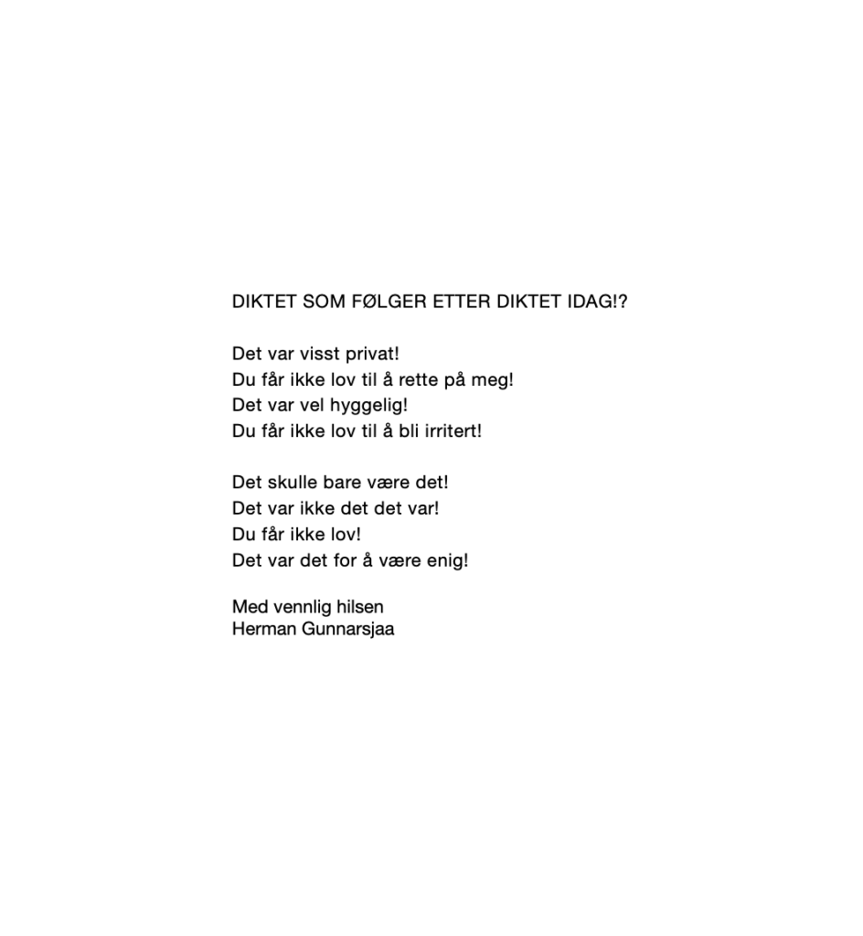 Publiser januar 12, 2021 av nettstedet hermangunnarsjaa.com diktet som følger etter idag!? (C) hermangunnarsjaa.com og Herman Gunnarsjaa