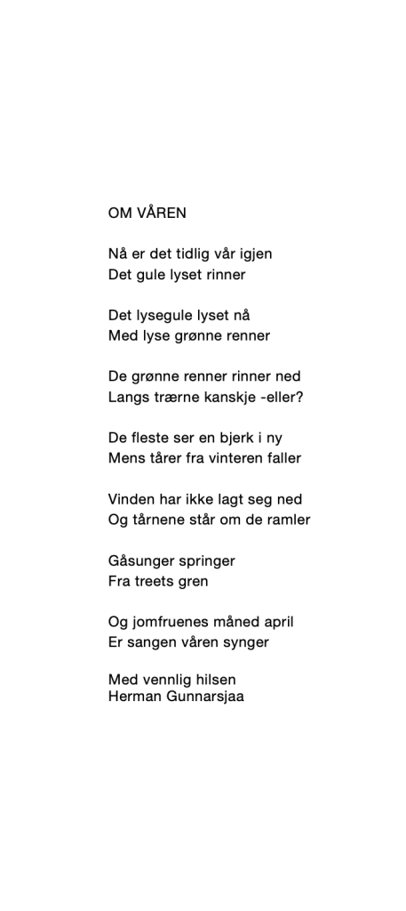 Publiser mars 25, 2021mars 20, 2021 av nettstedet hermangunnarsjaa.com om våren (C) hermangunnarsjaa.com og Herman Gunnarsjaa