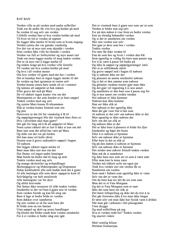 Publiser mai 27, 2021 av nettstedet hermangunnarsjaa.com ray ban (C) hermangunnarsjaa.com og Herman Gunnarsjaa
