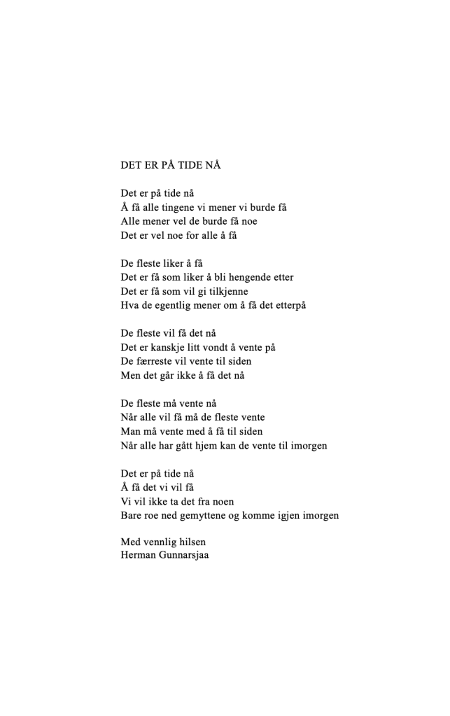 Publiser mai 19, 2021 av nettstedet hermangunnarsjaa.com det er på tide nå (C) hermangunnarsjaa.com og Herman Gunnarsjaa