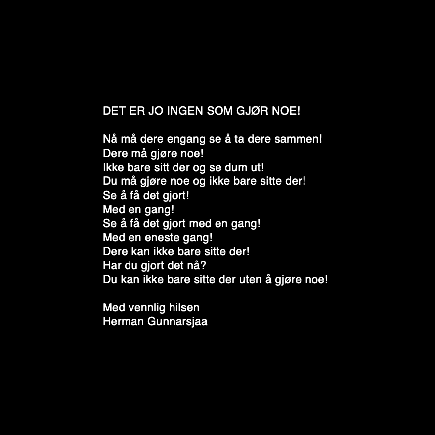 Publiser mai 20, 2021 av nettstedet hermangunnarsjaa.com det er jo ingen som gjør noe! (C) hermangunnarsjaa.com og Herman Gunnarsjaa