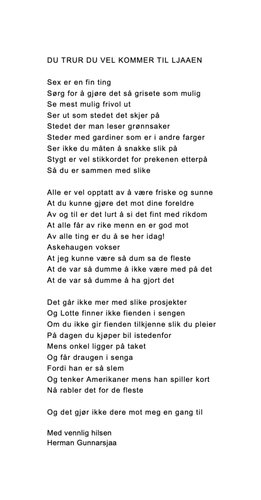 Publiser juli 15, 2021juli 12, 2021 av nettstedet hermangunnarsjaa.com du trur du vel kommer til ljaaen (C) hermangunnarsjaa.com og Herman Gunnarsjaa