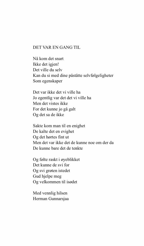 Henvendelser kun på e-post oppgitt på kontaktsiden her på nettsiden hermangunnarsjaa.com.