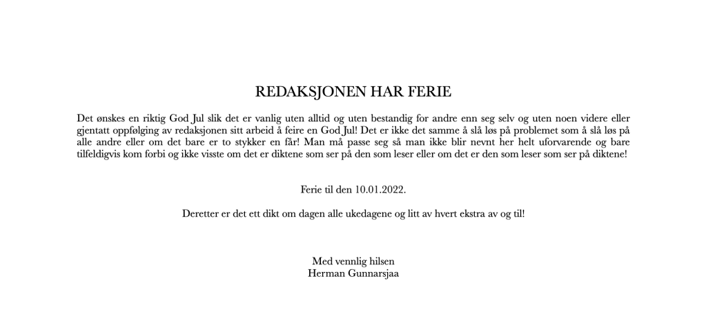 Publiser desember 22, 2021 av nettstedet hermangunnarsjaa.com det tredje diktet (C) hermangunnarsjaa.com og Herman Gunnarsjaa