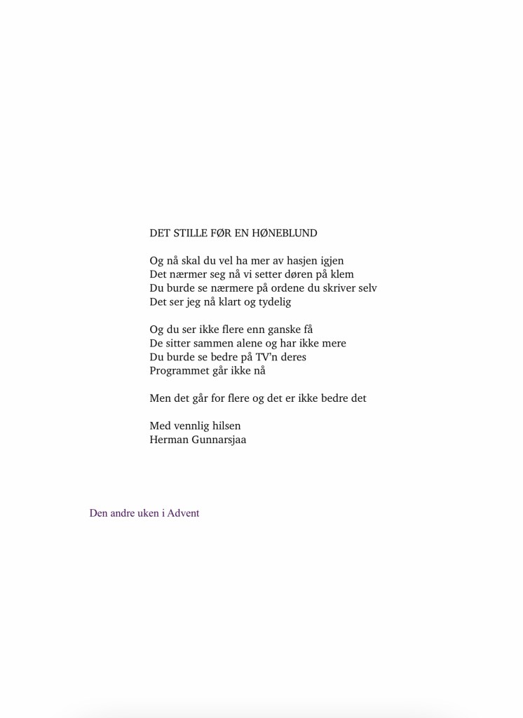 Publiser desember 9, 2021 av nettstedet hermangunnarsjaa.com det stille før en høneblund (C) hermangunnarsjaa.com og Herman Gunnarsjaa