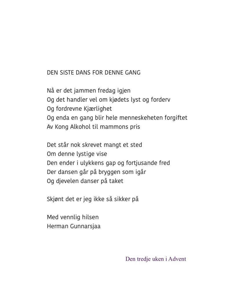 Publiser desember 17, 2021 av nettstedet hermangunnarsjaa.com den siste dans for denne gang (C) hermangunnarsjaa.com Herman Gunnarsjaa