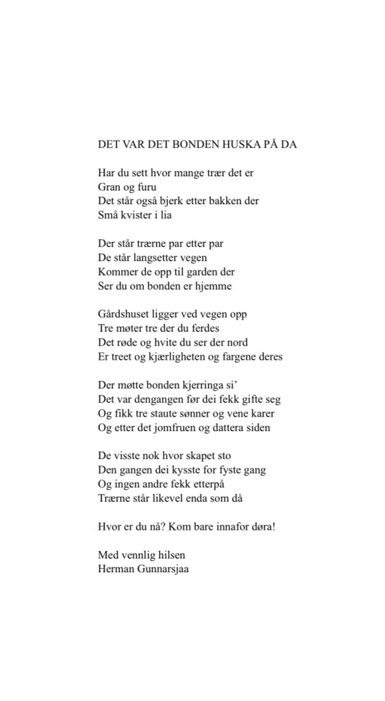 Publiser januar 14, 2022januar 13, 2022 av nettstedet hermangunnarsjaa.com det var det bonden huska på da (C) hermangunnarsjaa.com og Herman Gunnarsjaa