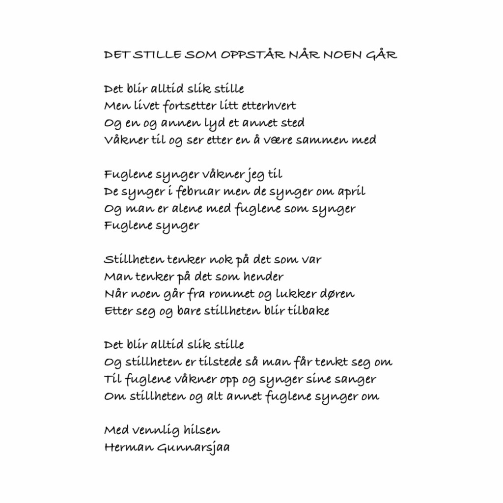 Publiser februar 15, 2022 av nettstedet hermangunnarsjaa.com det stille som oppstår når noen går (C) hermangunnarsjaa.com og Herman Gunnarsjaa