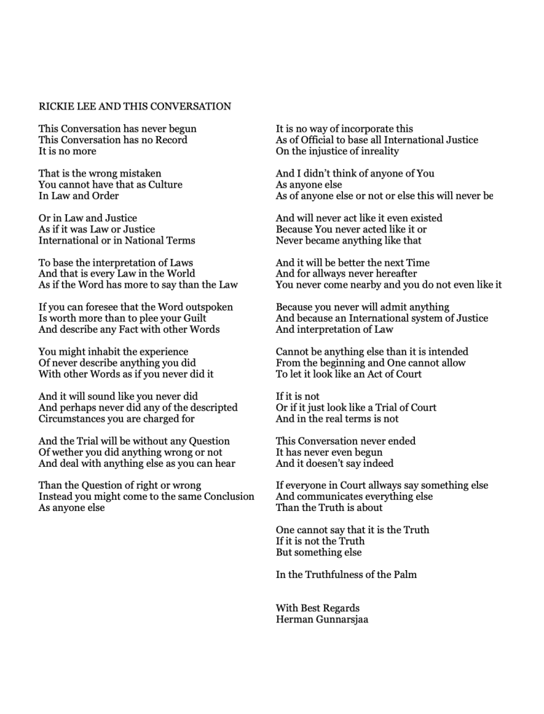 Publiser september 7, 2022september 7, 2022 av nettstedet hermangunnarsjaa.com rickie + lee + and + this + conversation (C) hermangunnarsjaa.com og Herman Gunnarsjaa