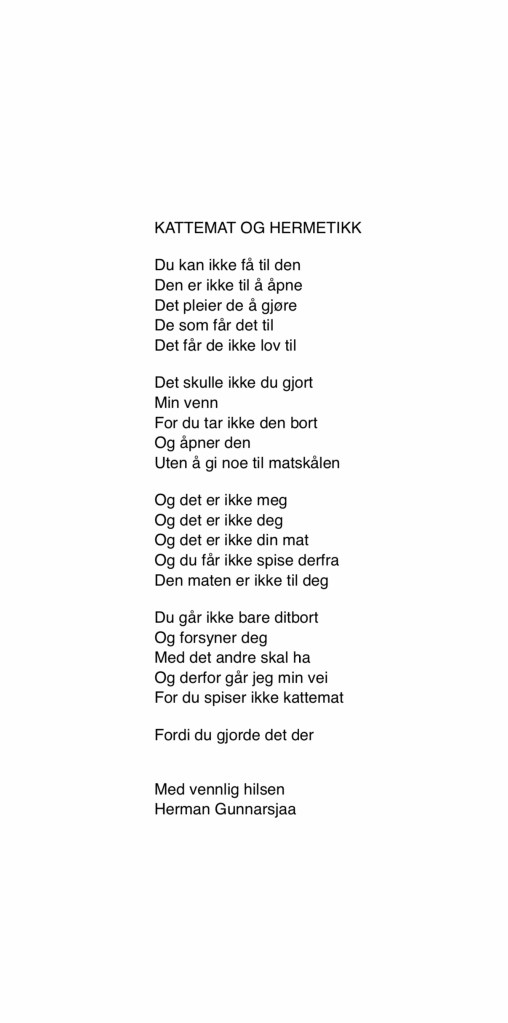 Publiser oktober 5, 2022 av nettstedet hermangunnarsjaa.com kattemat og hermetikk (C) hermangunnarsjaa.com og Herman Gunnarsjaa