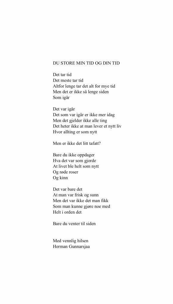 Publiser oktober 25, 2022 av nettstedet hermangunnarsjaa.com du store min tid og din tid (C) hermangunnarsjaa.com og Herman Gunnarsjaa