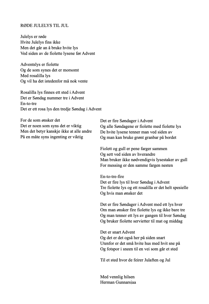 Publiser desember 1, 2022desember 1, 2022 av nettstedet hermangunnarsjaa.com røde Julelys til Jul (C) hermangunnarsjaa.com og Herman Gunnarsjaa