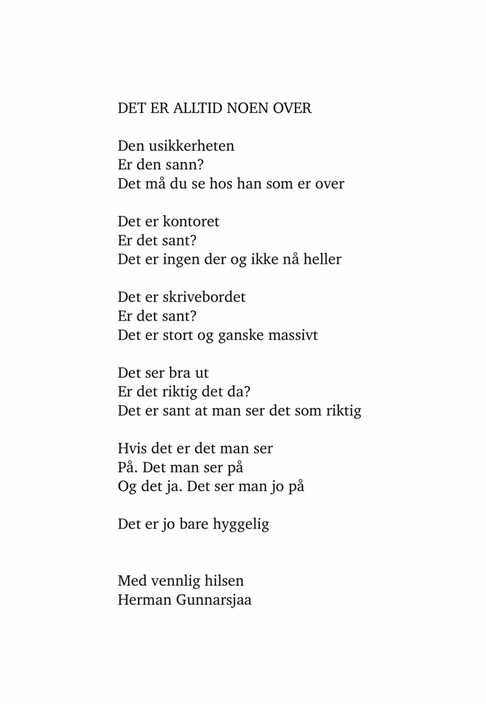 Publiser august 29, 2023august 29, 2023 av nettstedet hermangunnarsjaa.com det er alltid noen over (C) hermangunnarsjaa.com og Herman Gunnarsjaa