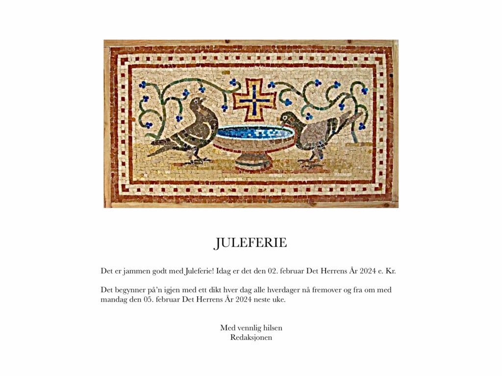 Publiser februar 2, 2024februar 6, 2024 av nettstedet hermangunnarsjaa.com Juleferien Det har vært Juleferie fra 23.12.2023 til 02.02.2024 (C) hermangunnarsjaa.com og Herman Gunnarsjaa