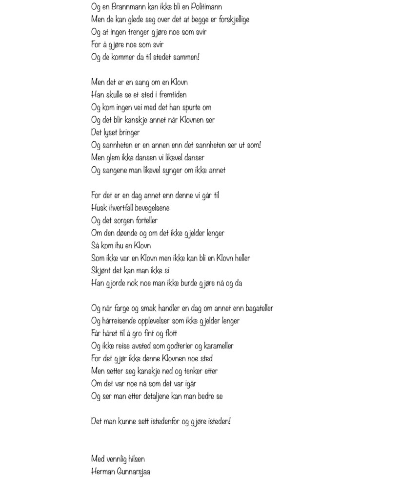 Publiser mars 21, 2024mars 21, 2024 av nettstedet hermangunnarsjaa.com det finnes en sang om en klovn (C) hermangunnarsjaa.com og Herman Gunnarsjaa