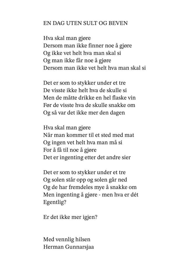Publiser juni 20, 2024 av nettstedet hermangunnarsjaa.com en dag uten sult og beven (C) hermangunnarsjaa.com og Herman Gunnarsjaa
