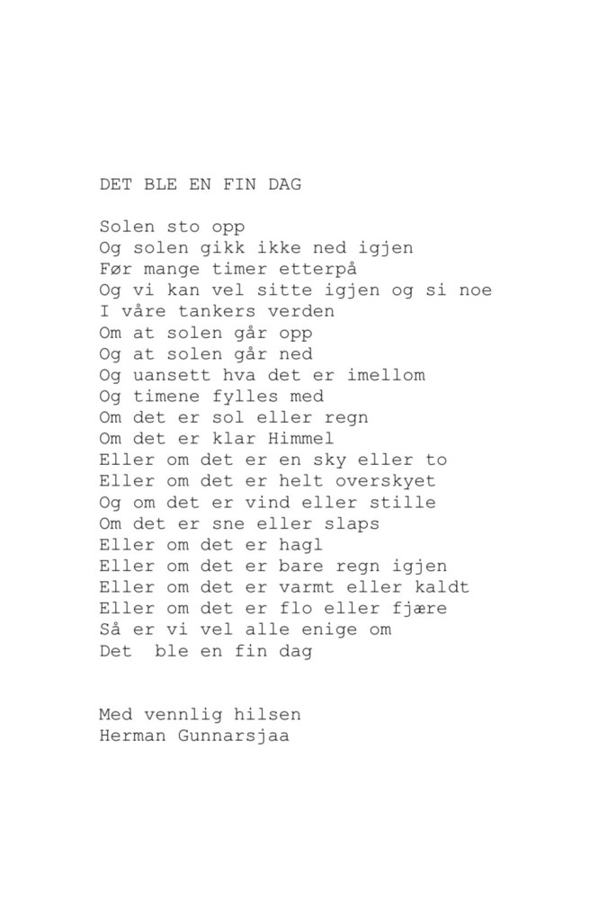 Publiser august 26, 2024 av nettstedet hermangunnarsjaa.com det ble en fin dag (C) hermangunnarsjaa.com og Herman Gunnarsjaa