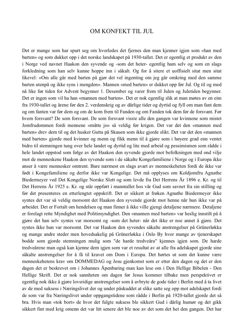 Det vises til teksten med oppskriften det er publisert idag 29.11.2024 og klokken 16:37 og med tittelen «Om konfekt til Jul«. Det publiseres i tillegg den samme oppskriften en gang til men som utskriftvennlig PDF. det går bra å laste ned og skrive ut dersom man ønsker å lese oppskriften opp for andre og for eksrmpel ved frokostbordet. Dette ekstra tilleggsdokumentet er publisert den 29.11.2024 og en time senere klokken 17:37. Og klikk på den røde teksten med tittelen.