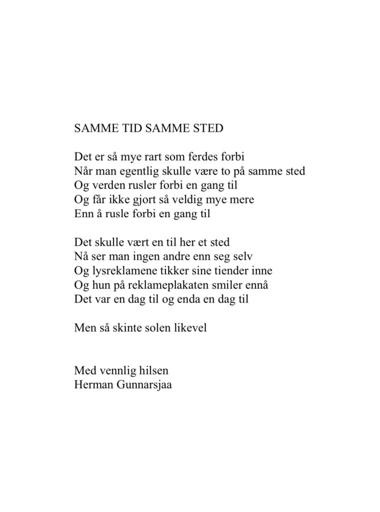 Publiser januar 20, 2025januar 20, 2025 av nettstedet hermangunnarsjaa.com samme tid samme sted (C) hermangunnarsjaa.com og Herman Gunnarsjaa
