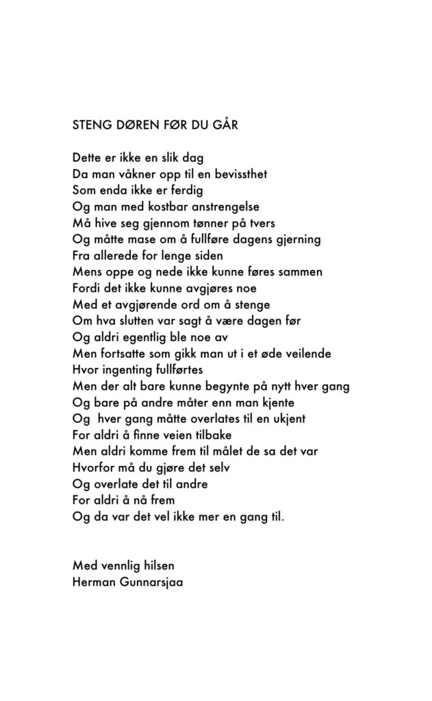 steng døren før du går