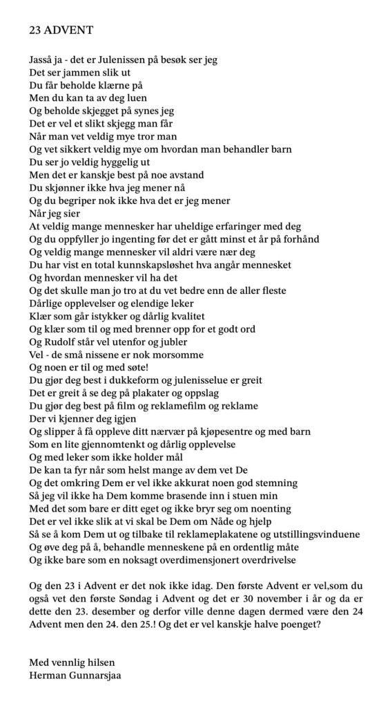 • 15. Advent med diktet: Husk nå dette litt bedre nå også