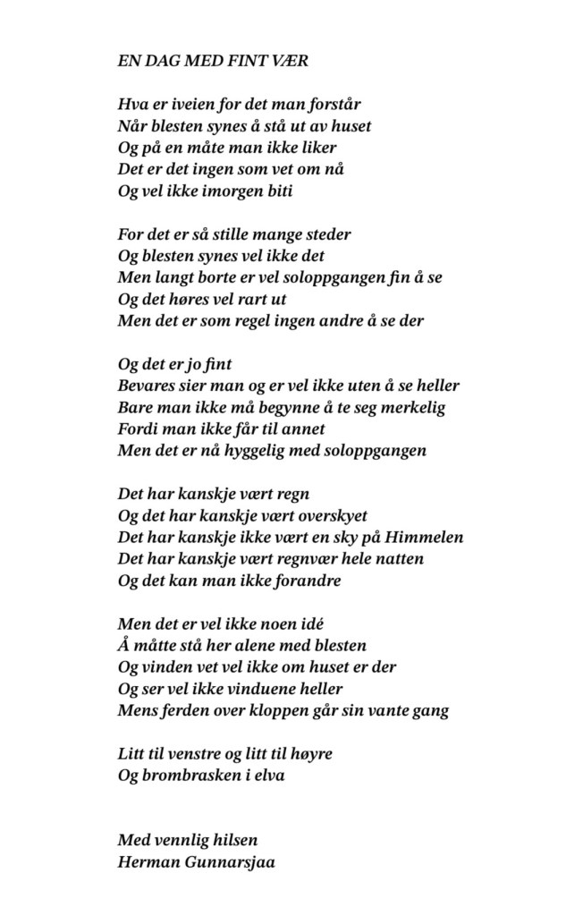 Publiser januar 30, 2025 av nettstedet hermangunnarsjaa.com en dag med fint vær (C) hermangunnarsjaa.com og Herman Gunnarsjaa