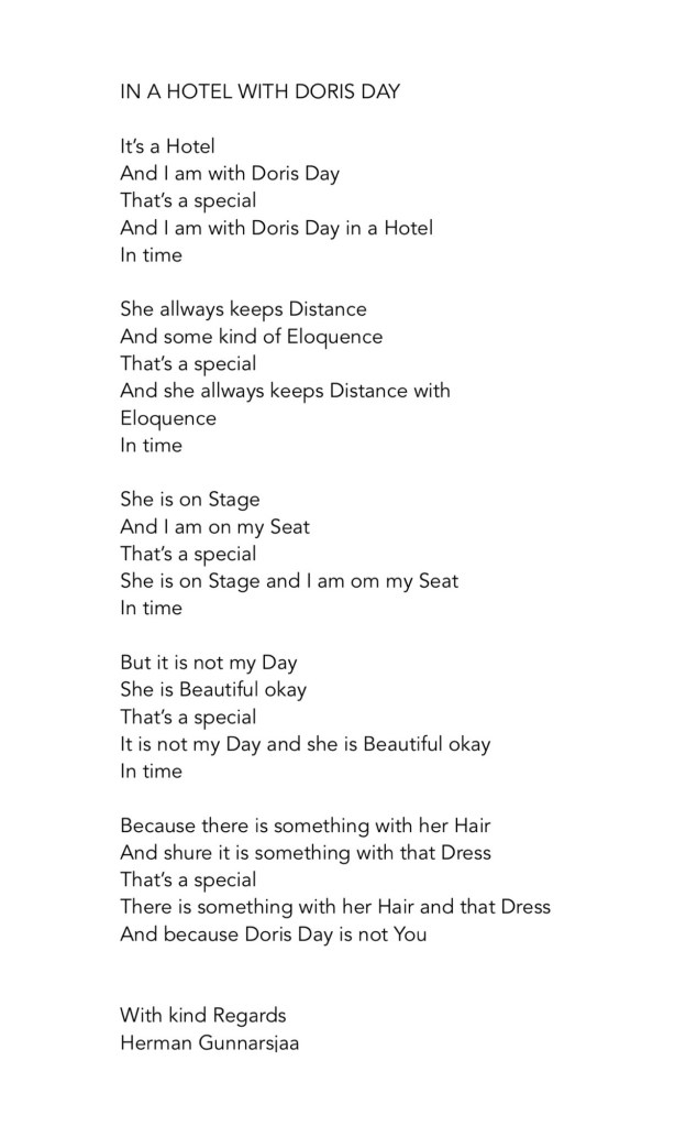 Publiser november 10, 2025 av nettstedet hermangunnarsjaa.com in a hotel with Doris Day (C) hermangunnarsjaa.com og Herman Gunnarsjaa