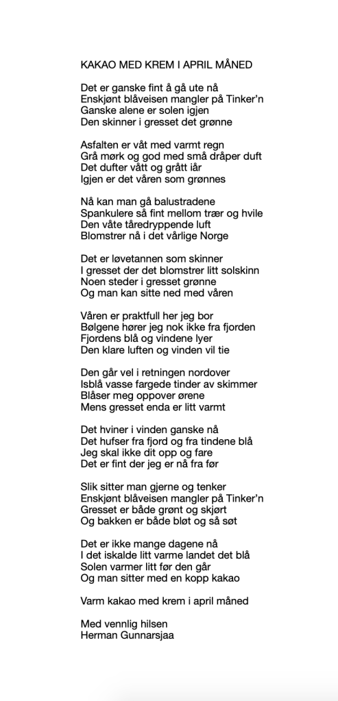 Publiser april 28, 2020april 28, 2020 av nettstedet hermangunnarsjaa.com kakao med krem i april måned (C) leve.live og Herman Gunnarsjaa
