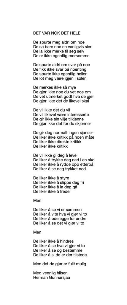 Publiser mars 3, 2020 av nettstedet hermangunnarsjaa.com det var nok det hele (C) leve.live og Herman Gunnarsjaa