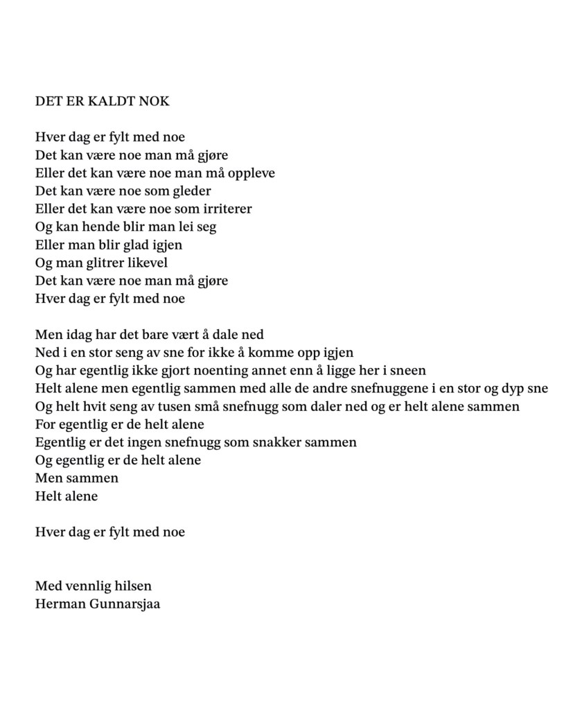 Publiser februar 3, 2025 av nettstedet hermangunnarsjaa.com det er kaldt nok (C) hermangunnarsjaa.com og Herman Gunnarsjaa