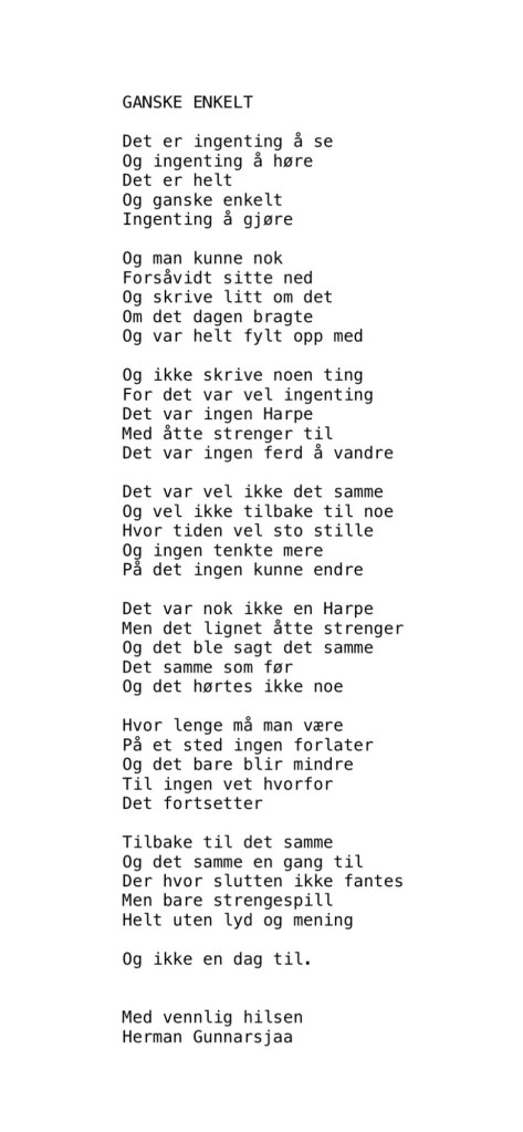 Publiser desember 12, 2025desember 18, 2025 av nettstedet hermangunnarsjaa.com 12. Advent med diktet: Ingenting igjen av ingenting (C) hermangunnarsjaa.com og Herman Gunnarsjaa